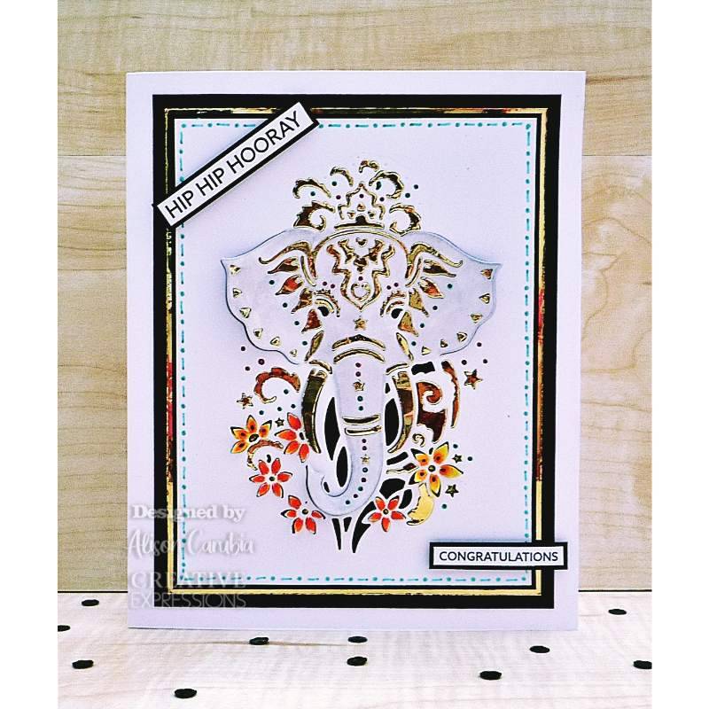 Creative Expressions Elephant Die. Designed by Cathie Shuttleworth, this single die depicts a highly decorated elephant the die creates the look of hand cut paper creating great images. The die includes cut and lift sections. Single die with great scene image that will make a perfect card front. The die is perfect for scrap booking beautiful memories and for card making. Die size 9.8 x 14.0 cm.