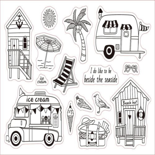 The Seaside Stamp Set is a must have for any project. With multiple stamps to choose from, you’ll have no problem producing any design you wish to create with this set. Colour with your chosen medium to make these images pop and fun! To use the clear stamps, remove from packaging and place on an acrylic block or stamping platform, ink up with your preferred ink and stamp. When finished with, wipe off any excess ink and remove the stamp from the acrylic block and place back in the packaging.